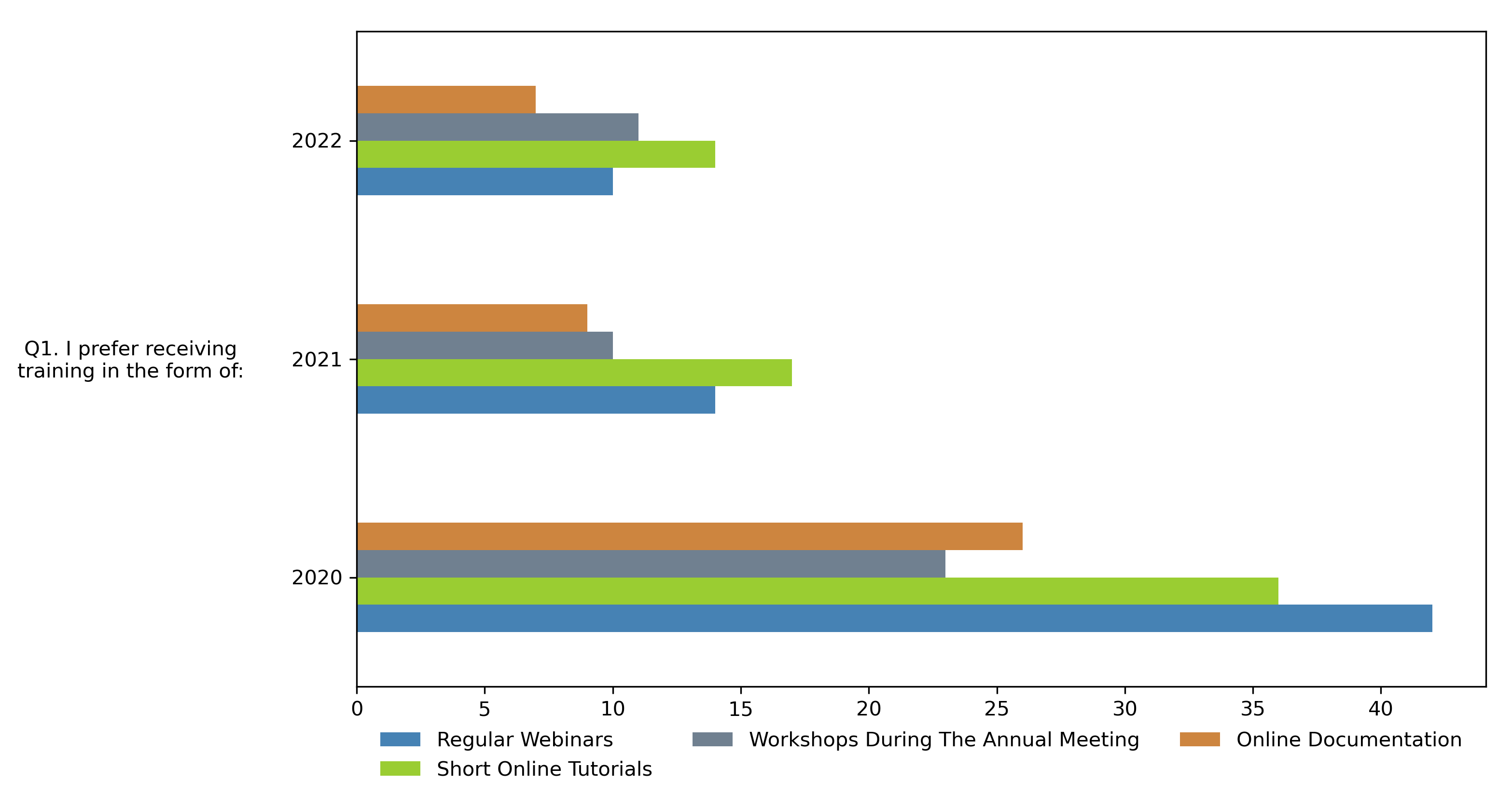 Partners were asked to rank their preference on different forms of training with a rank of 1 indicating their first choice and a rank of 4 indicating their last choice. Overall, the partners in 2022 preferred to receive training in the form of: