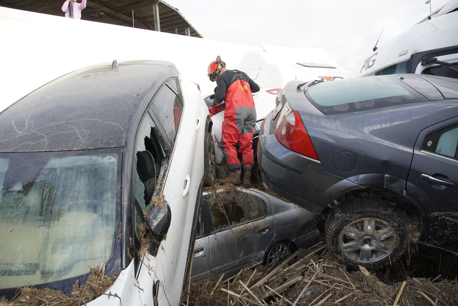 Teams of firefighters, police, civil guard, civil protection and military were deployed to the affected areas in the aftermath of the floods in order to restore essential infrastructure and services, clean roads, remove thousands of vehicles and debris, pump out water and mud, and inspect damaged buildings.